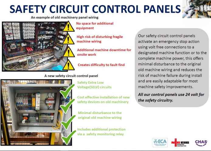 Sponmech can provide a fully PUWER 98 compliant approach to your wiring with our machine safety control boxes.