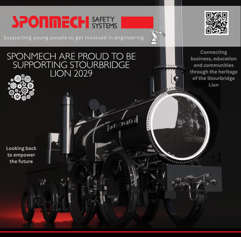 Sponmech are proud to be supporting the Stourbridge Lion 2029 Project. With our financial contribution we are encouraging youngsters to get involved with engineering and we are hoping to support a school in Stourbridge with this funding. This may lead in future to a replica Stourbridge Lion being built which would be wonderful! Watch this space!